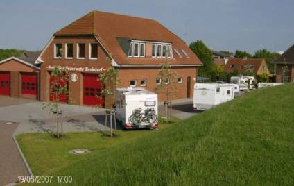 Stellplatz Brokdorf: Hinter dem Feuerwehrhaus, ausgeschildert, ca. 30