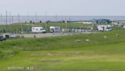 Stellplätze auf einer Wiese direkt am Deich, 6,00 €/24 h, mit Wasser und Strom