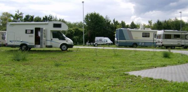 37 große Stelleinheiten auf teils leicht geneigtem, durch Rasenpflastersteine befestigtem Untergrund, einige Stelleinheiten noch im Bau.